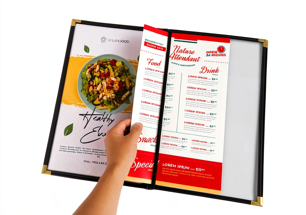 Each menu cover includes four pockets, allowing for up to eight views of your content, making it simple to organize and update menus as needed.